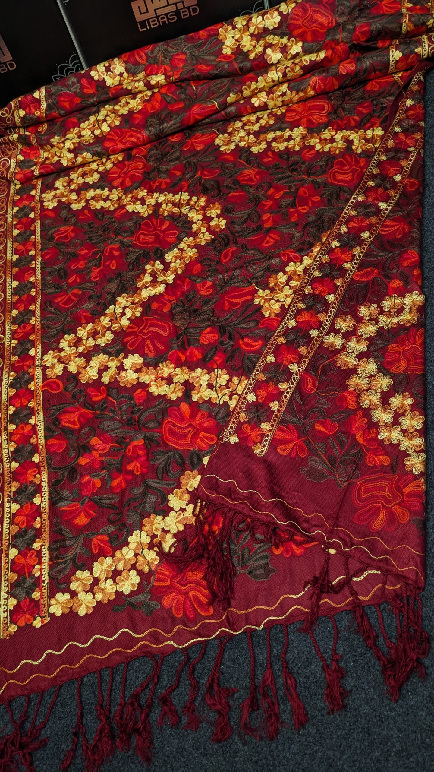💫 পুরো শালের ওপর এমব্রয়ডারি কাজ করা, যেটা আপনার লুককে করে তুলবে একদম এলিগেন্ট ও রুচিশীল।